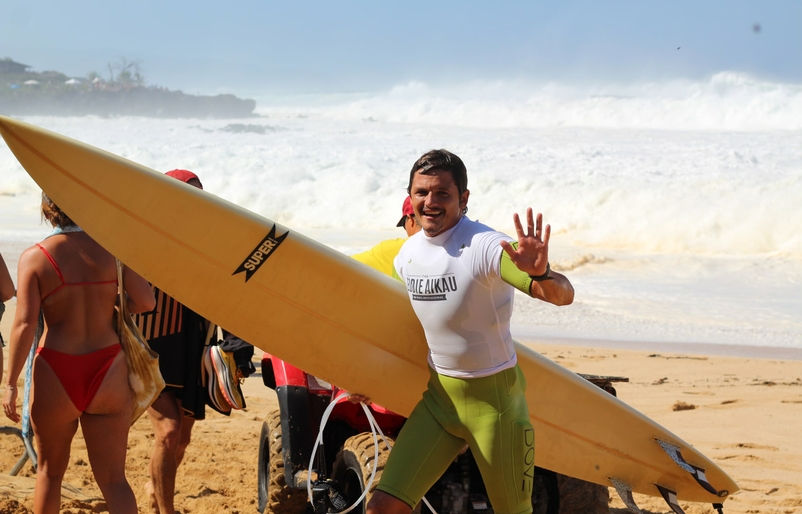 It was a collective effort, Gee explained. Hawaiian Airlines extended flight discounts and baggage waivers to help surfers get to Oʻahu in time for the event. The carrier’s airport teams, some of whom were among the first faces competitors saw on their journey, ensured a smooth trip by taking care of their luggage and prized surfboards (a perk now included under Hawaiian’s standard baggage allowance). Hawaiian’s in-flight teams kept traveling competitors at ease with a relaxing cabin experience, calming underlying nerves. Meanwhile, at the carrier’s Honolulu headquarters, employees loaded up their cars with banners, awards and more to get to Waimea Bay as early as possible and take their posts in time for the spectacle.