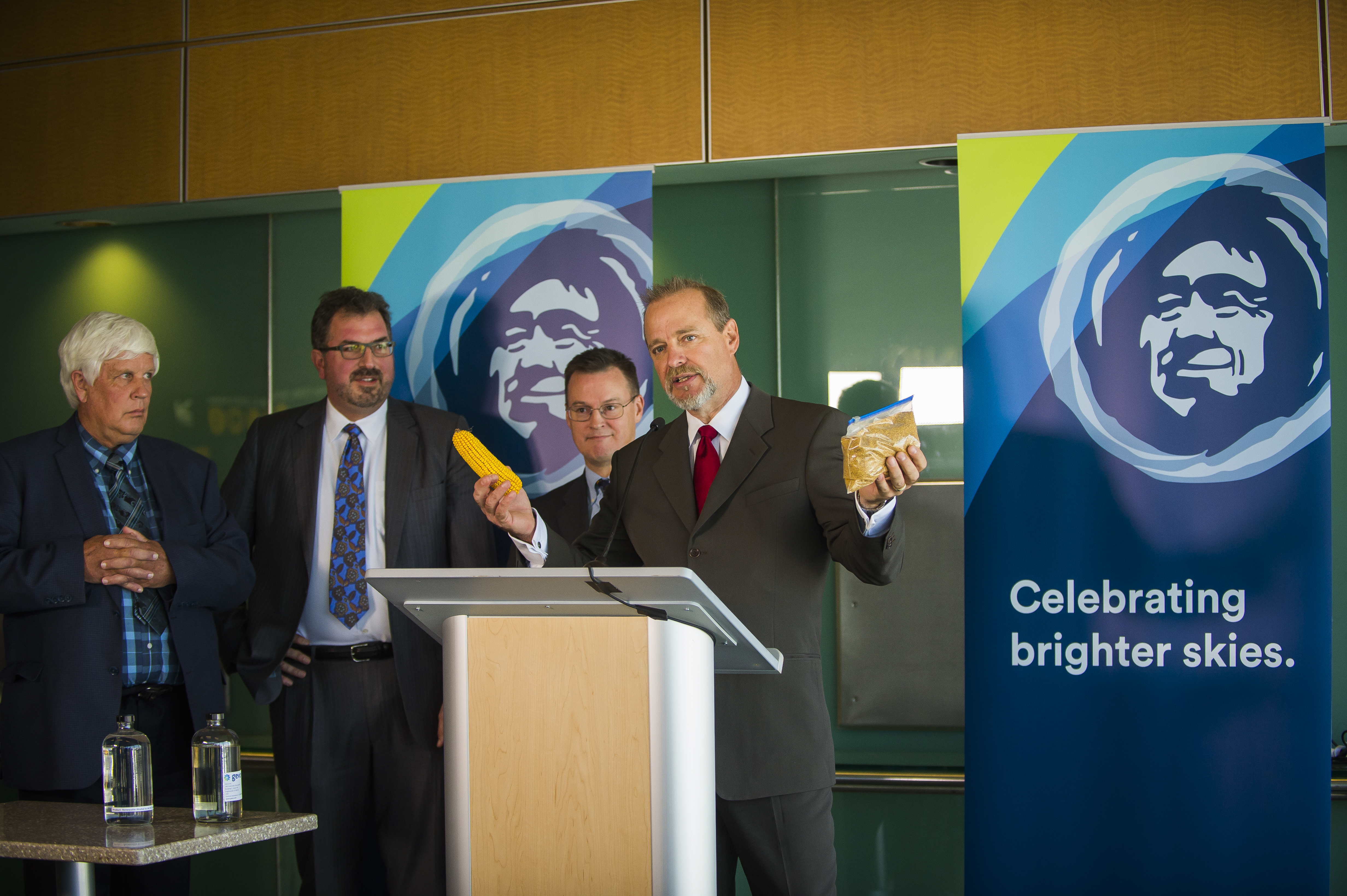 “The amazing part about this is that you can make something like a carbohydrate into jet fuel and not have to change the plane at all,” said Glenn Johnston, Gevo’s executive vice president of regulatory affairs. “We use carbohydrates – the most plentiful sugar source on earth – and we can use a variety of them.”