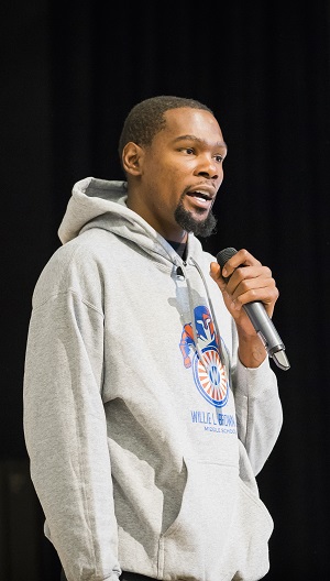 ‘Rise, Grind, Shine Again’: Kevin Durant’s message to Willie Brown Middle School students
